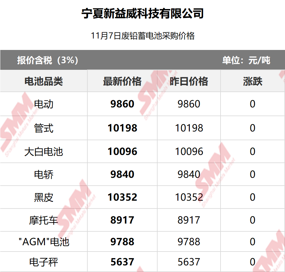 11月7日宁夏新益威 废电瓶采购报价