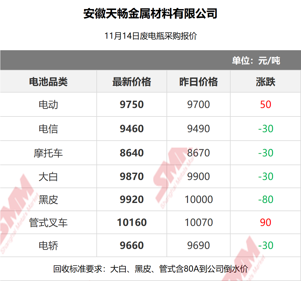 11月14日安徽天畅 废电瓶采购报价