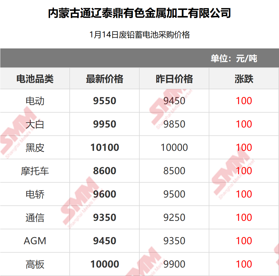 1月14日通辽泰鼎 废电瓶采购报价