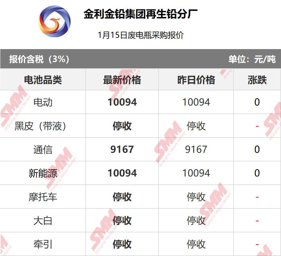 1月15日金利再生 废电瓶采购报价
