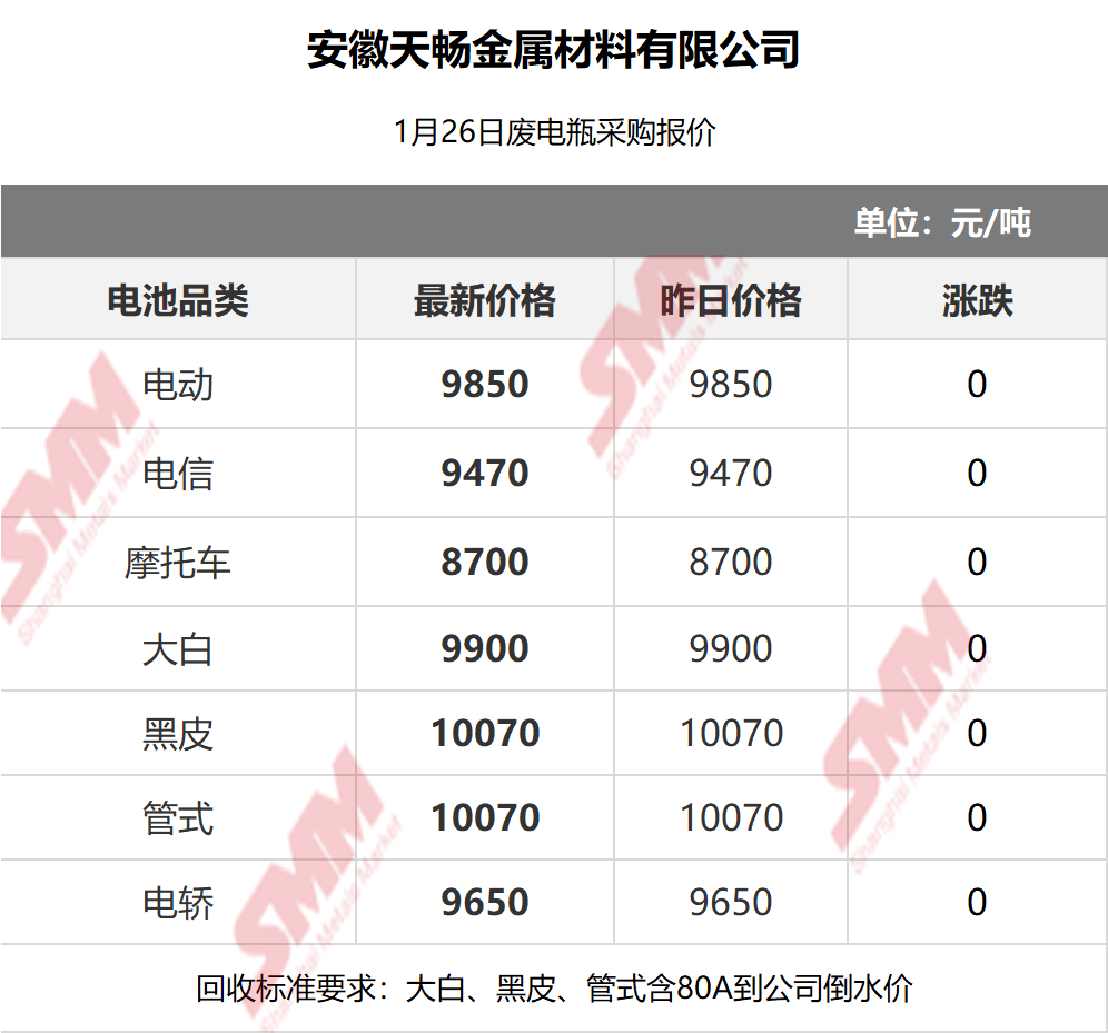 1月26日安徽天畅 废电瓶采购报价