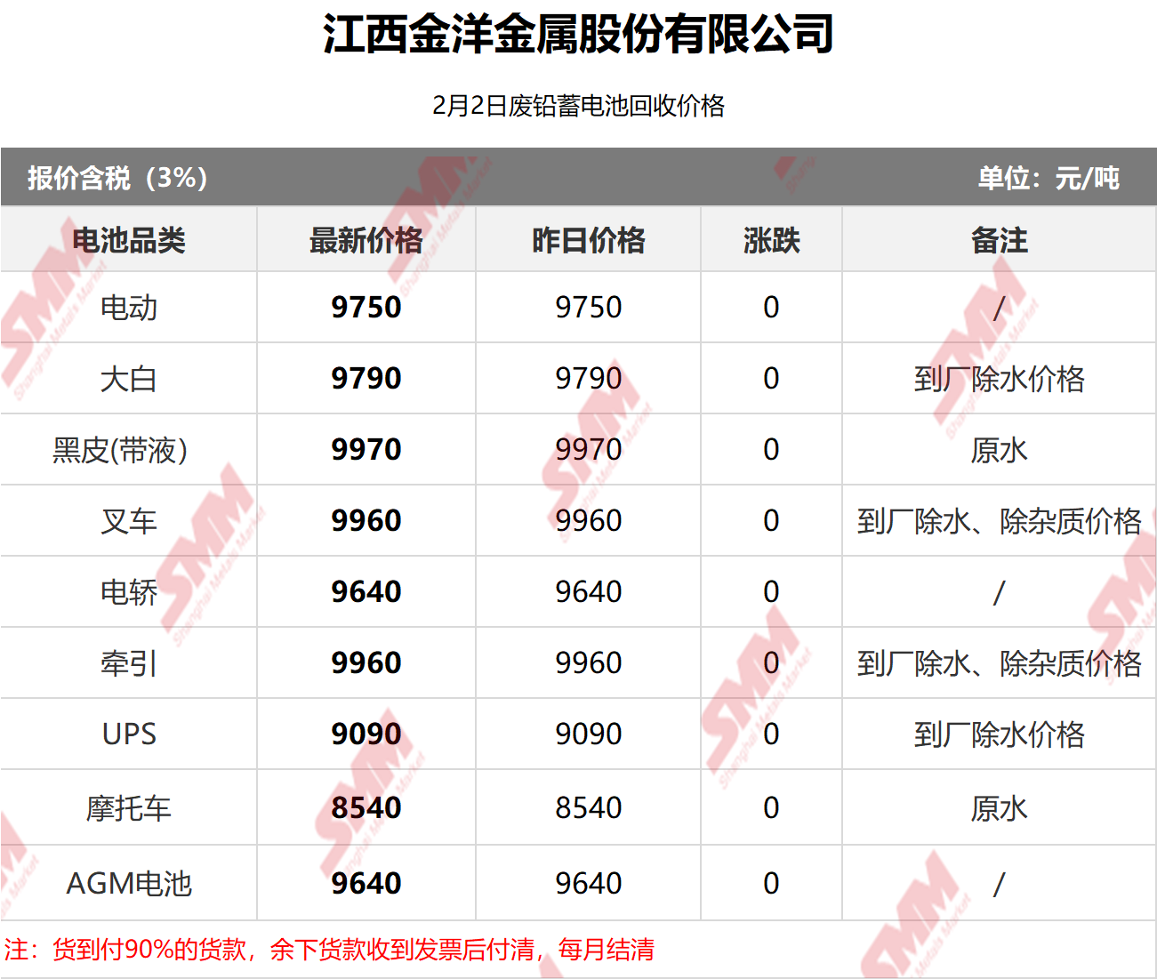 2月2日江西金洋 废电瓶采购报价