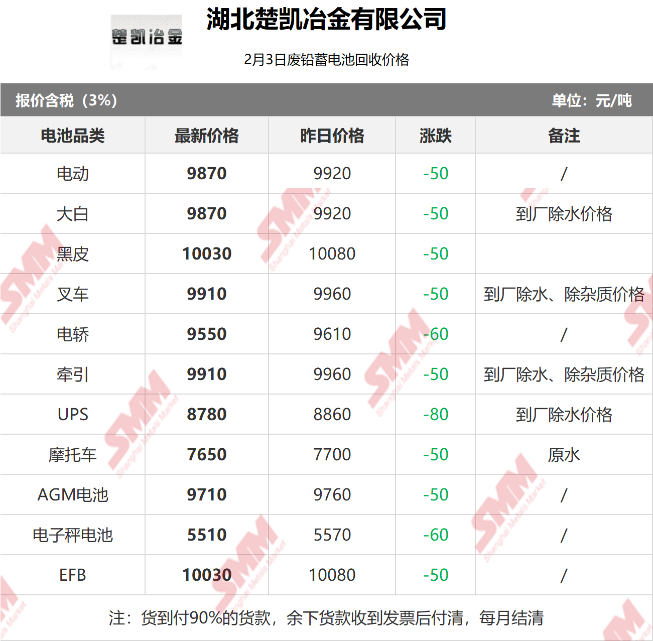 2月3日湖北楚凯 废电瓶采购报价