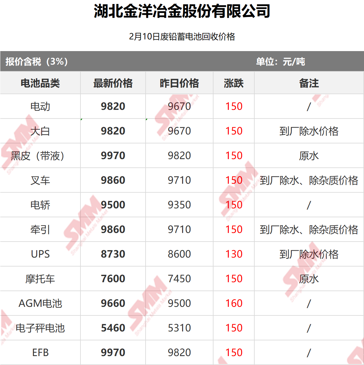SMM 2026/2/10 国内知名再生铅企业废电瓶采购报价