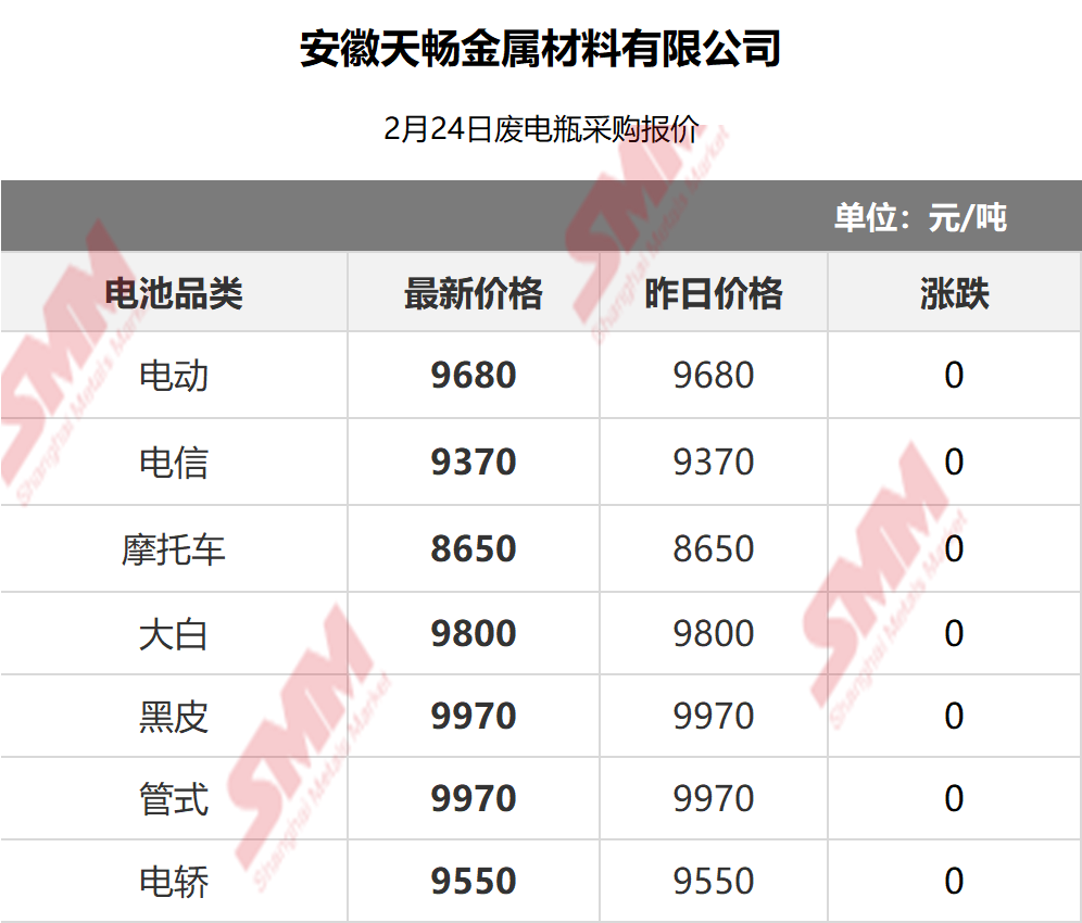 SMM 2026/2/27 国内知名再生铅企业废电瓶采购报价