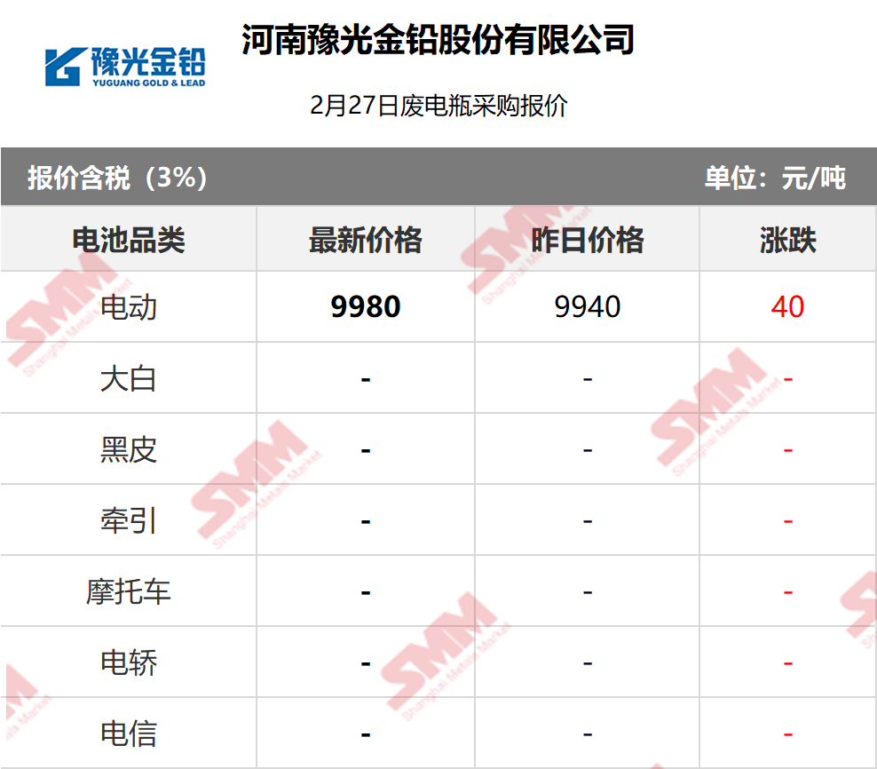 2月27日河南豫光 废电瓶采购报价