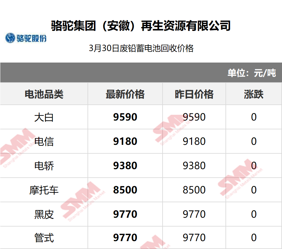3月30日安徽骆驼 废电瓶采购报价