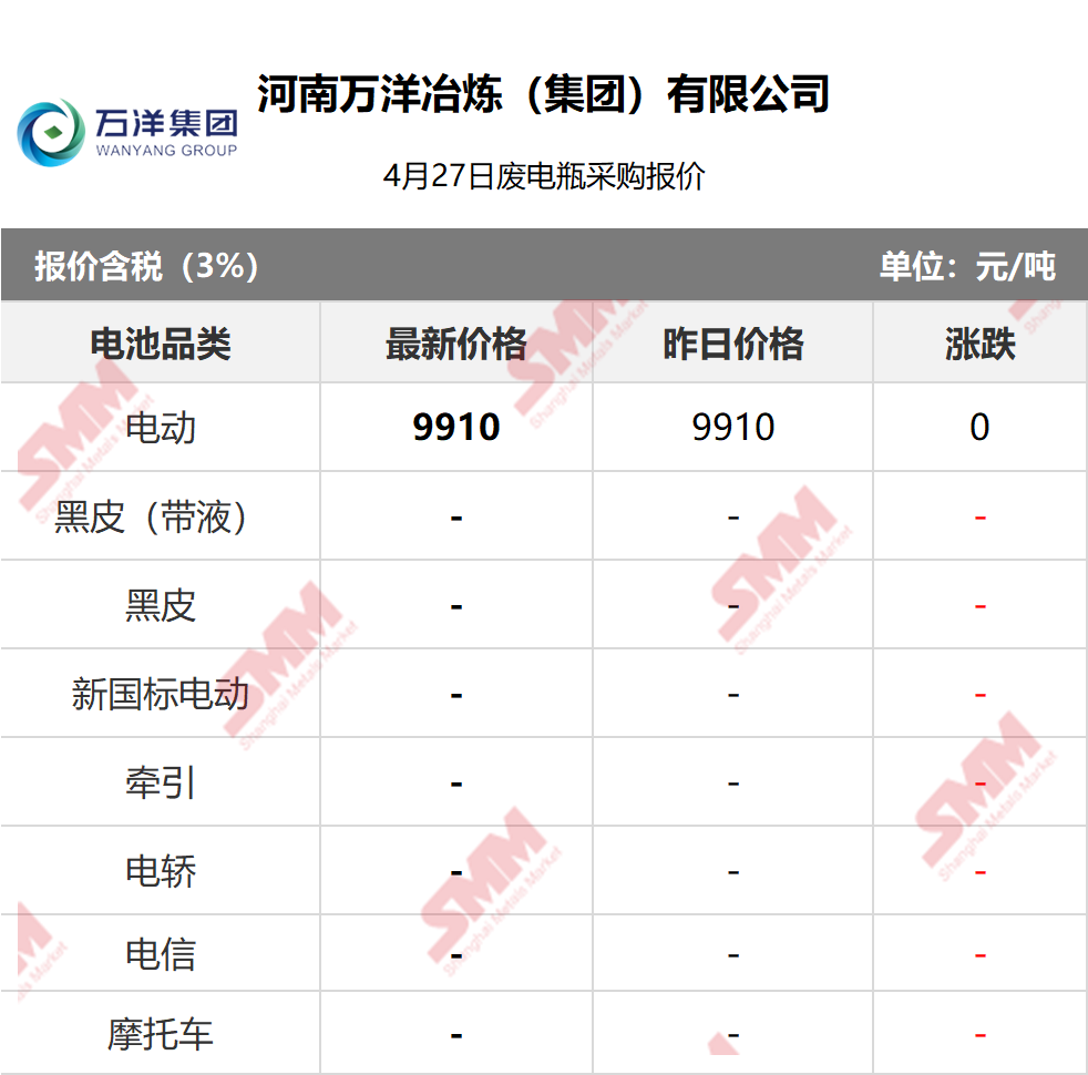 4月27日万洋鸿达 废电瓶采购报价