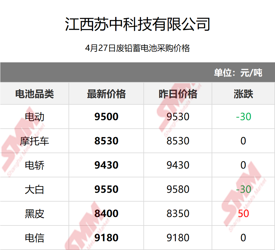 SMM 2026/4/24 国内知名再生铅企业废电瓶采购报价