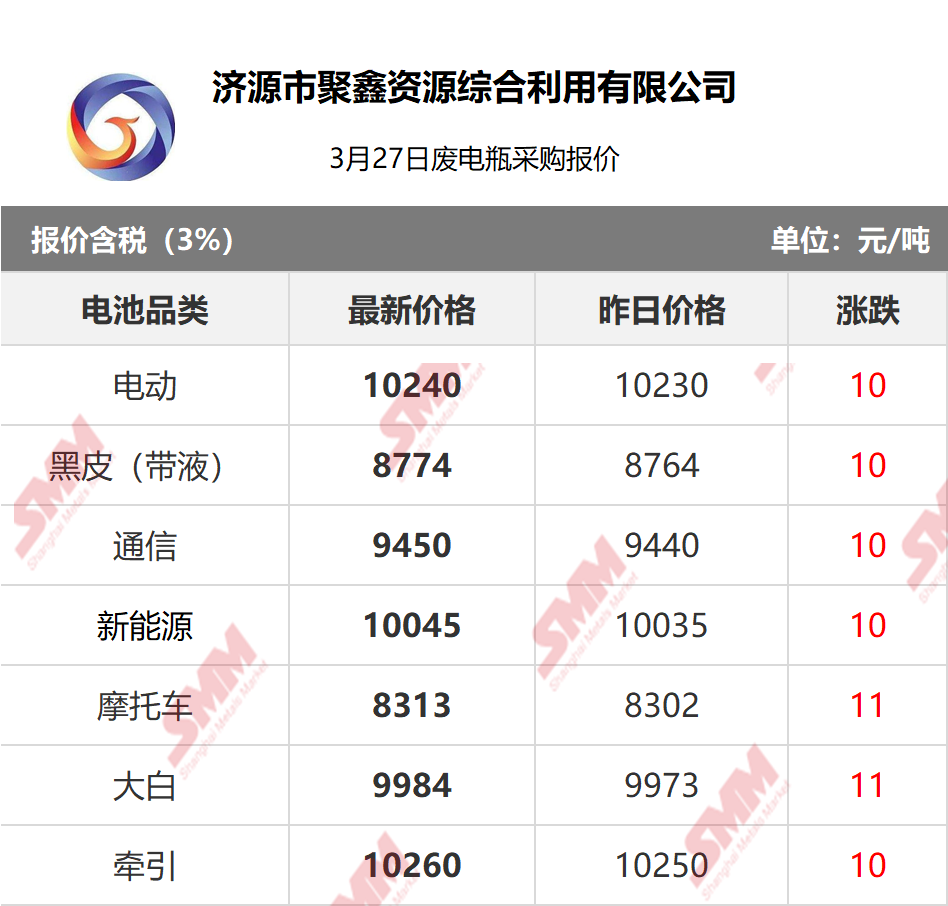 3月27日济源聚鑫废电瓶采购报价
