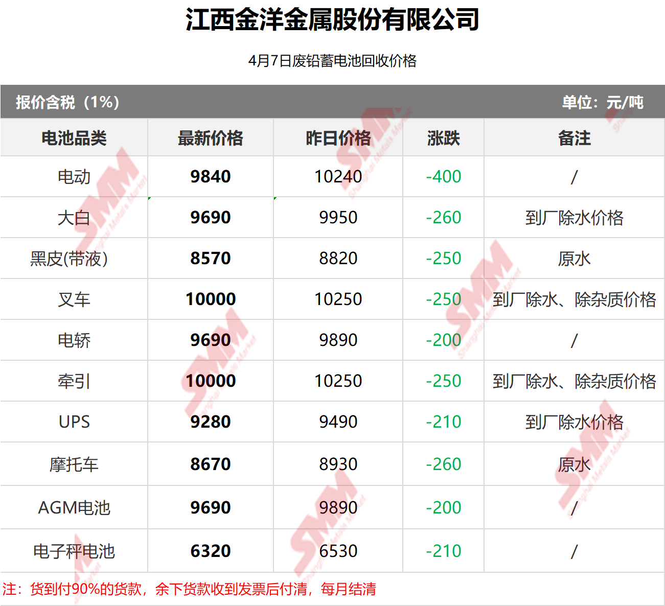 4月7日江西金洋 废电瓶采购报价