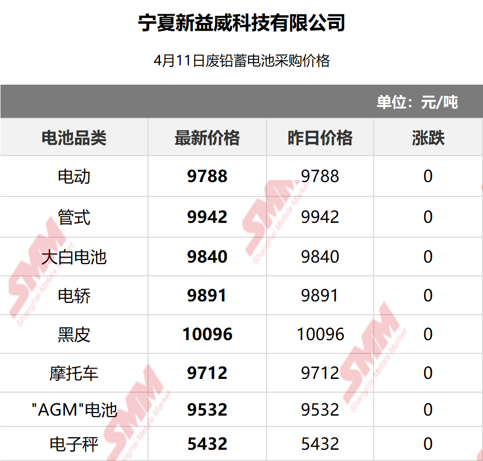 4月11日宁夏新益威 废电瓶采购报价