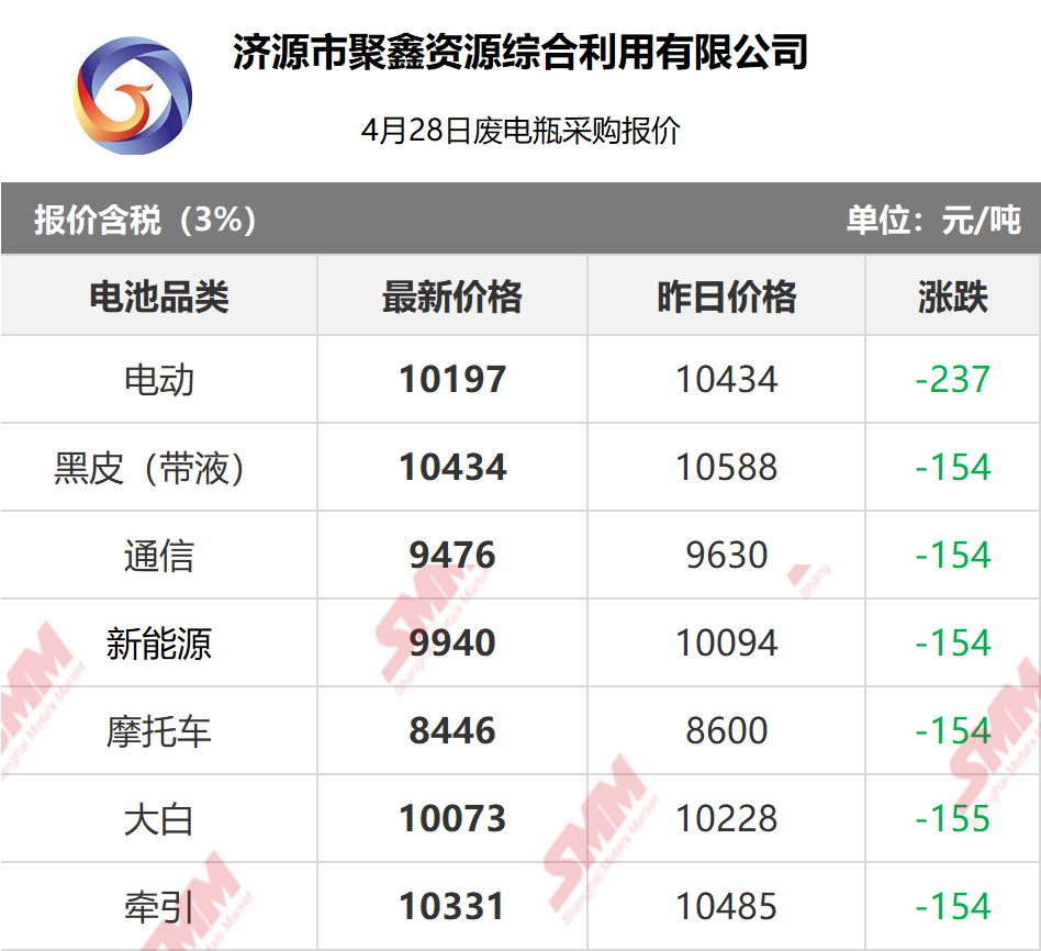 4月28日济源聚鑫 废电瓶采购报价