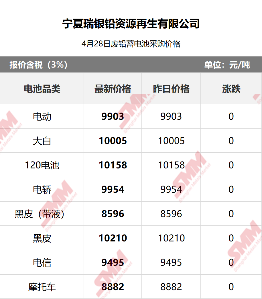 4月28日宁夏瑞银 废电瓶采购报价