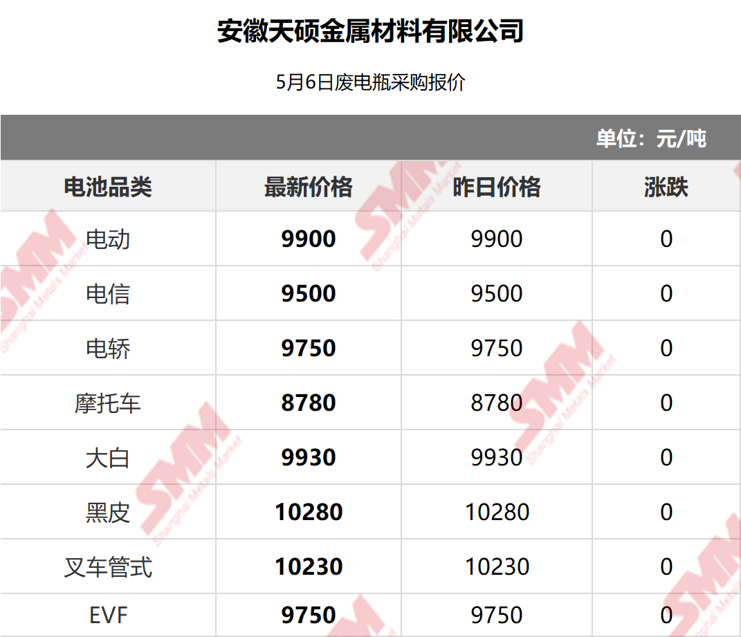 5月6日安徽天硕 废电瓶采购报价