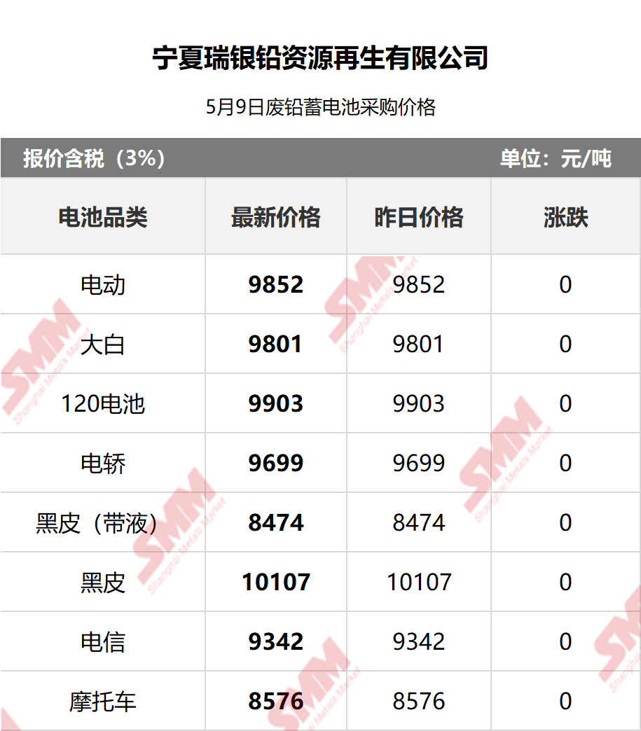 5月9日宁夏瑞银 废电瓶采购报价