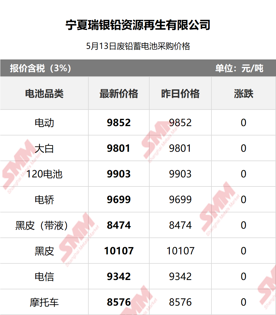 5月13日宁夏瑞银 废电瓶采购报价