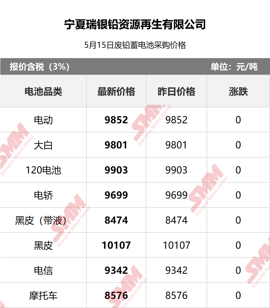 5月15日宁夏瑞银 废电瓶采购报价