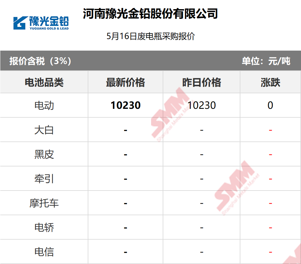 5月16日河南豫光 废电瓶采购报价