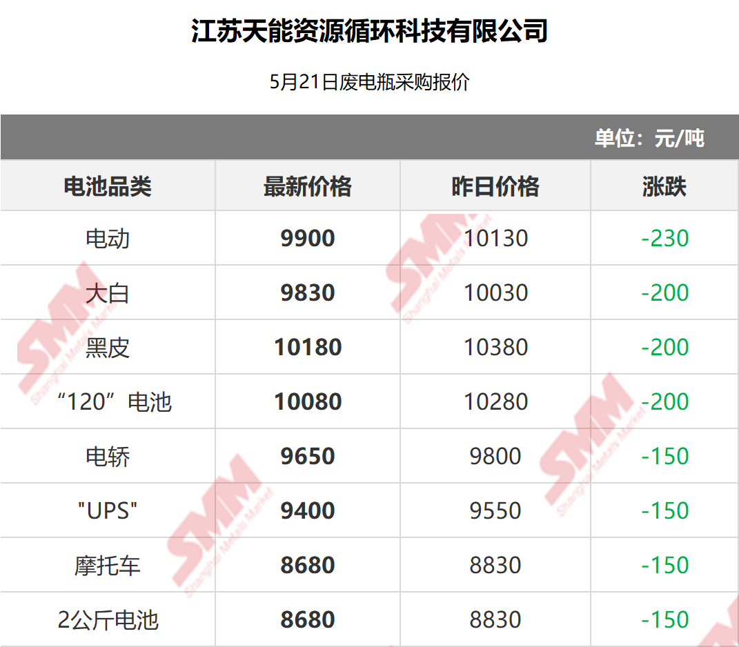 5月21日江苏天能资源 废电瓶采购报价