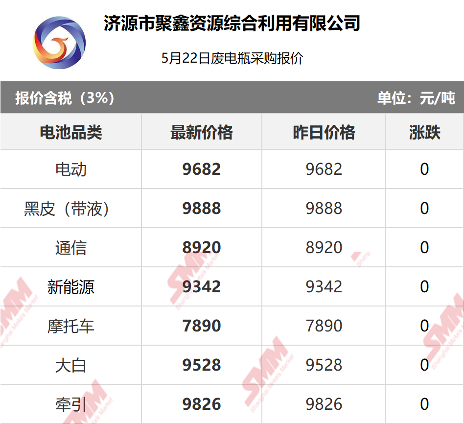 5月22日济源聚鑫 废电瓶采购报价