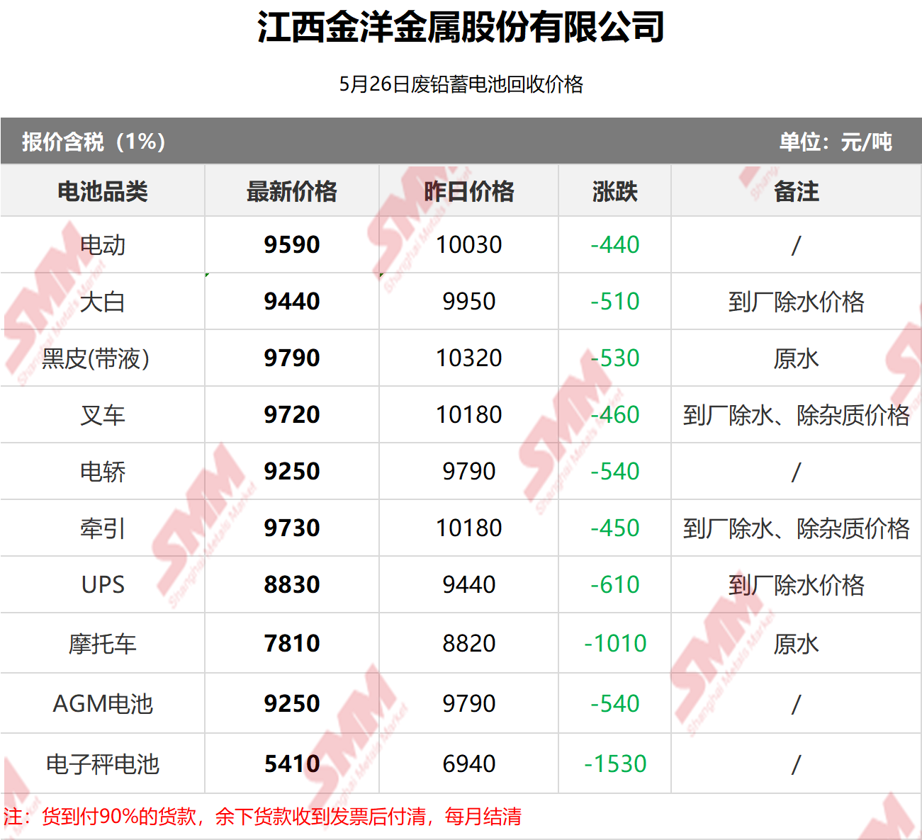 SMM 2026/3/19 国内知名再生铅企业废电瓶采购报价