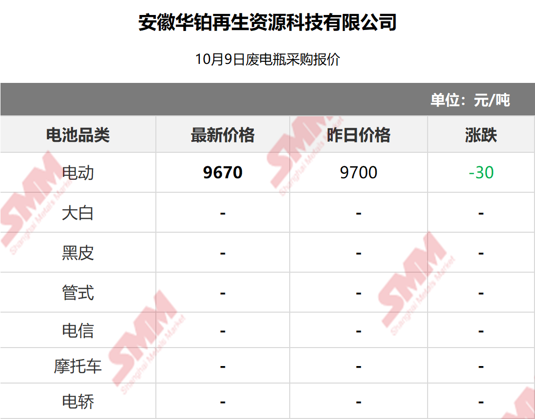 10月9日安徽华铂 废电瓶采购报价