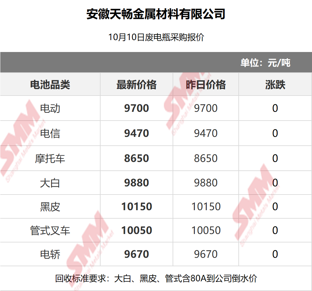 10月10日安徽天畅 废电瓶采购报价