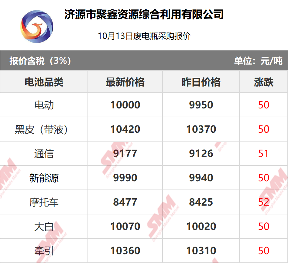 10月13日济源聚鑫 废电瓶采购报价