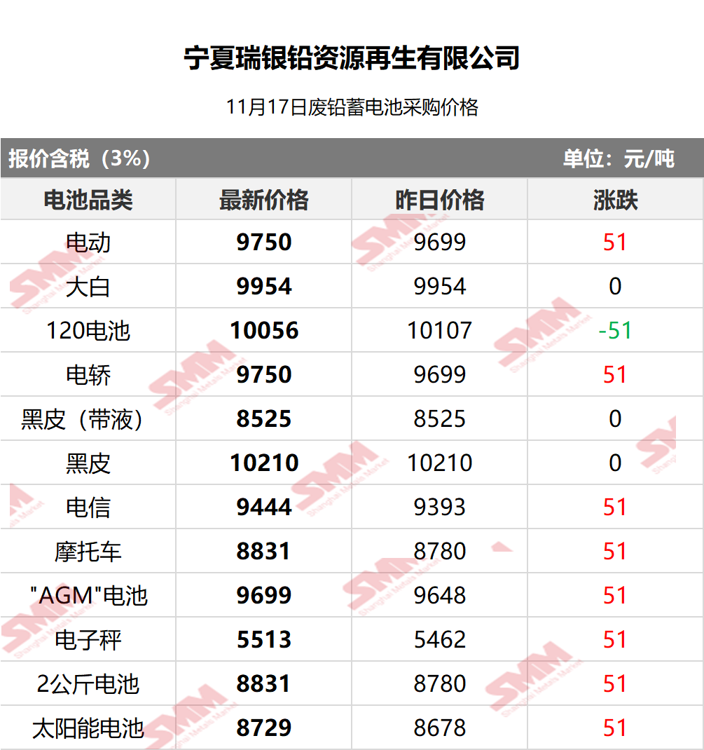 SMM 2025/12/9 国内知名再生铅企业废电瓶采购报价