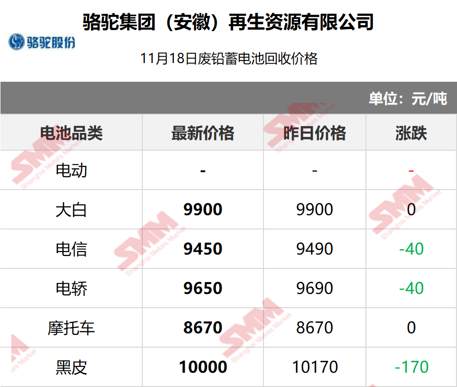 SMM 2025/12/8 国内知名再生铅企业废电瓶采购报价