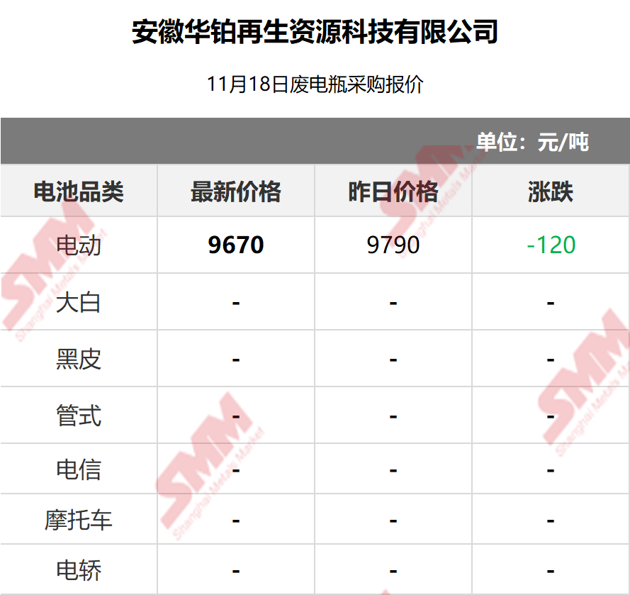 11月18日安徽华铂 废电瓶采购报价