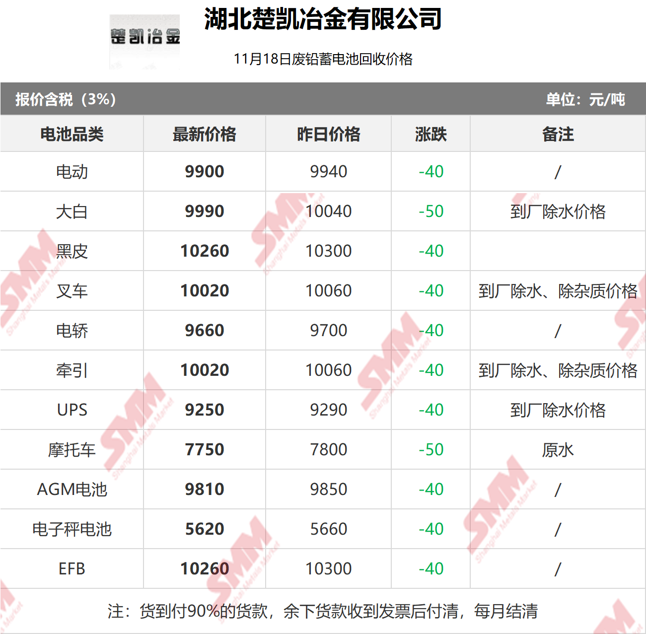 SMM 2025/12/8 国内知名再生铅企业废电瓶采购报价