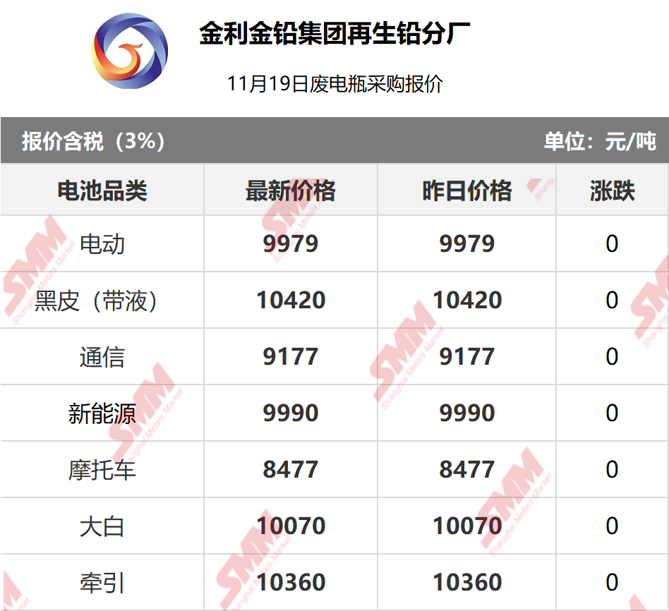 SMM 2025/12/8 国内知名再生铅企业废电瓶采购报价