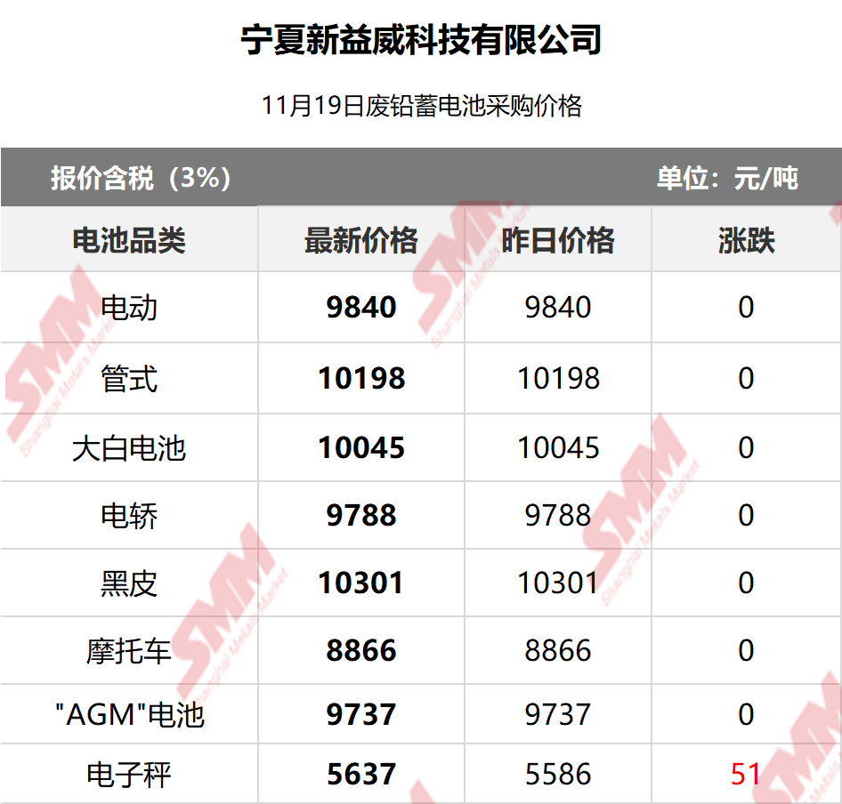 11月19日宁夏新益威 废电瓶采购报价