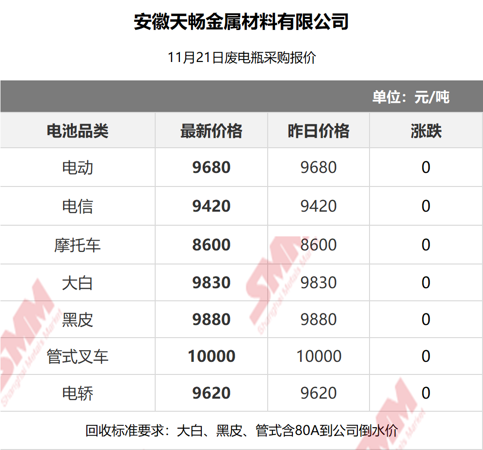 11月21日安徽天畅 废电瓶采购报价
