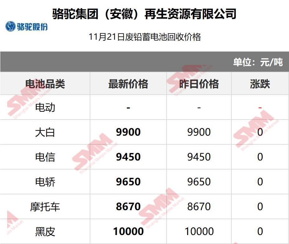 SMM 2025/12/9 国内知名再生铅企业废电瓶采购报价