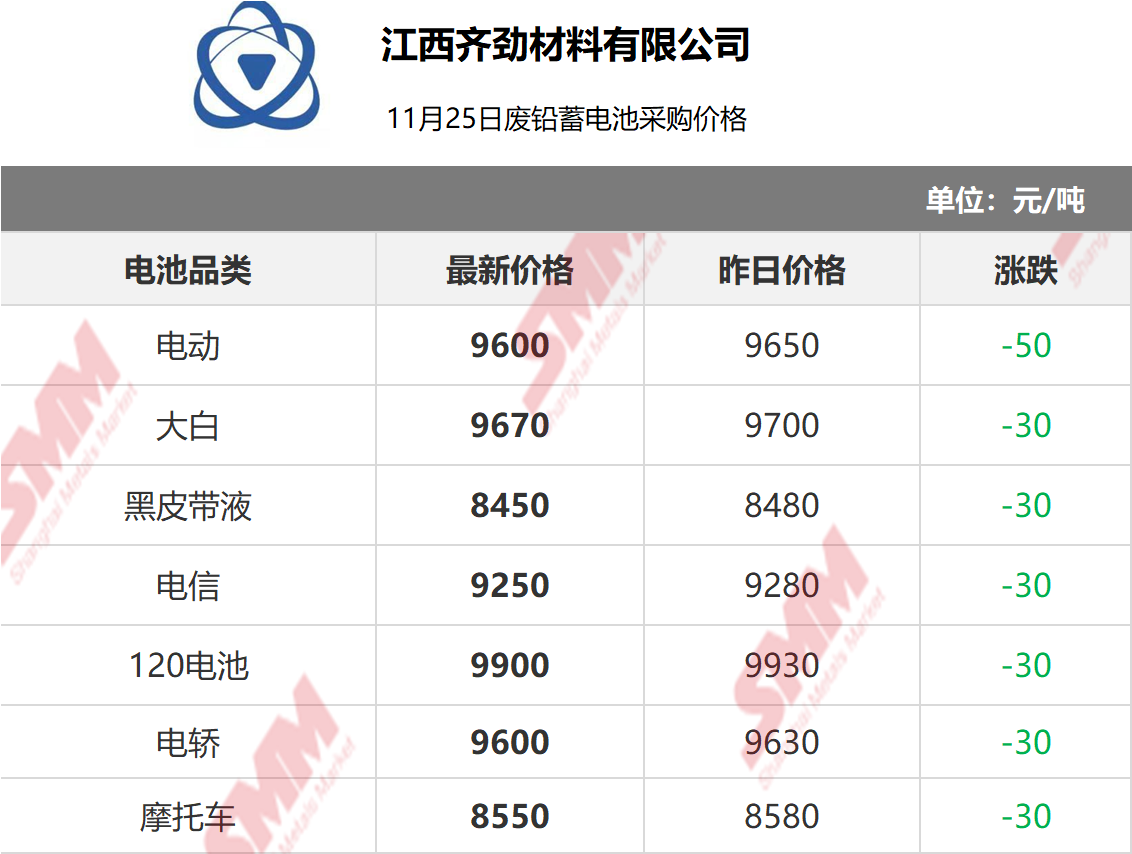 11月25日江西齐劲 废电瓶采购报价