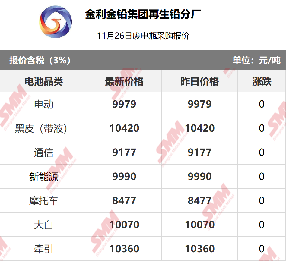 11月26日金利再生 废电瓶采购报价
