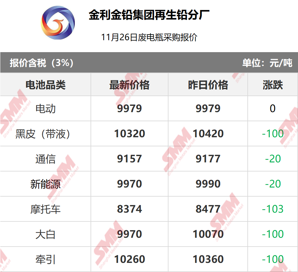 11月26日金利再生 废电瓶采购报价