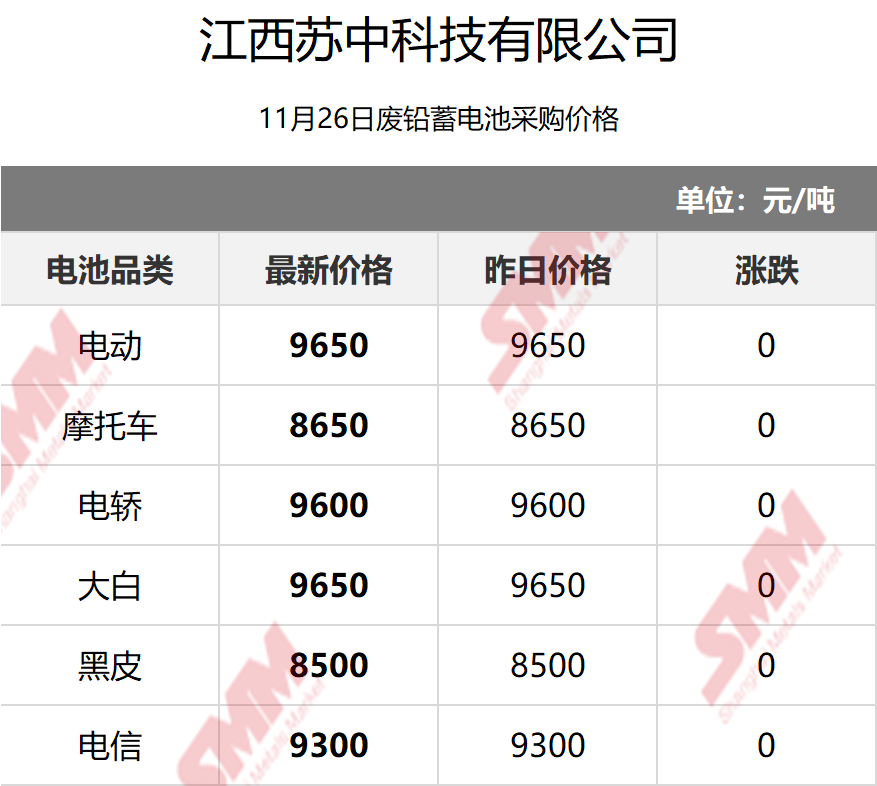 SMM 2025/12/8 国内知名再生铅企业废电瓶采购报价