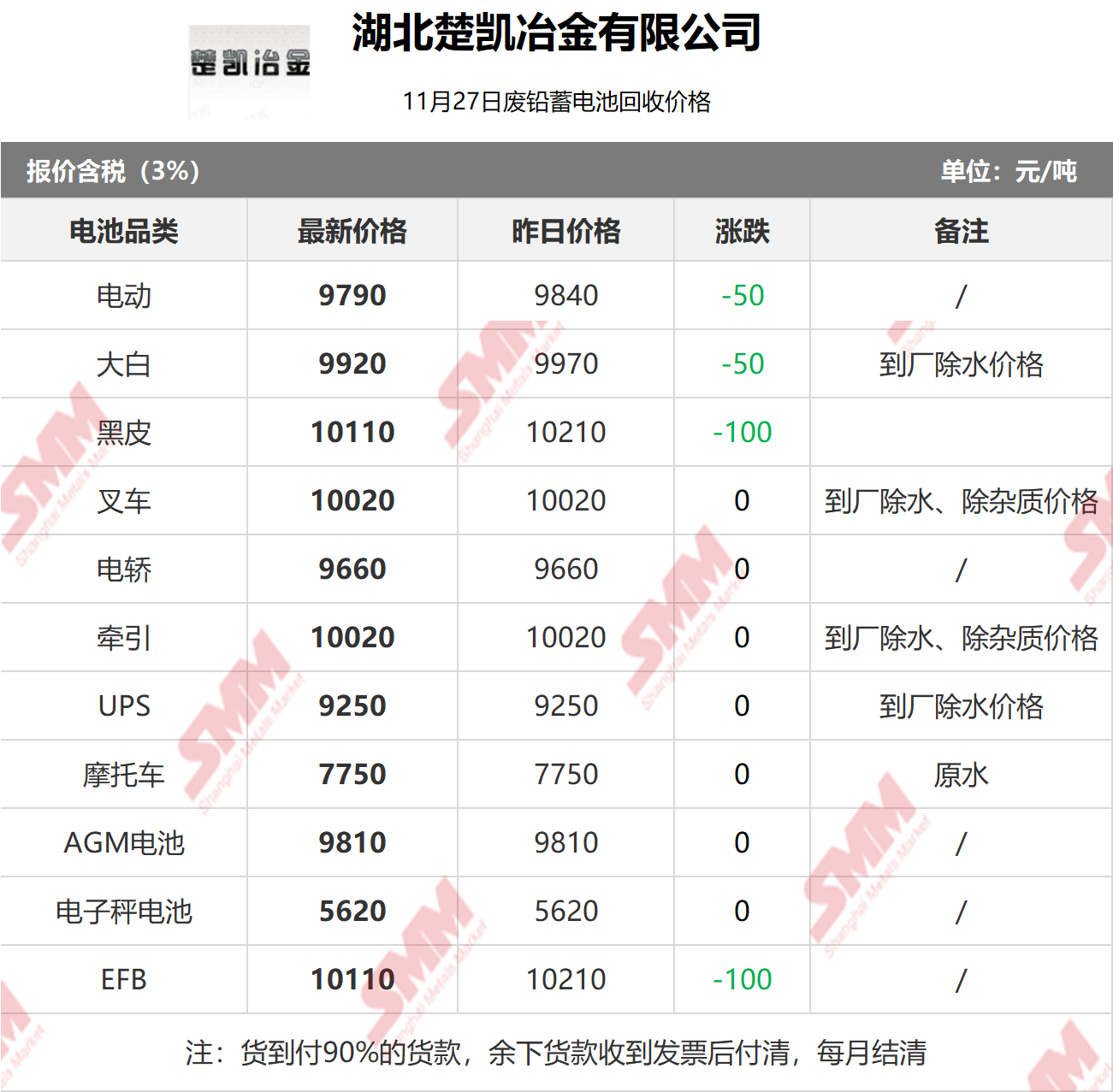 SMM 2026/3/17 国内知名再生铅企业废电瓶采购报价