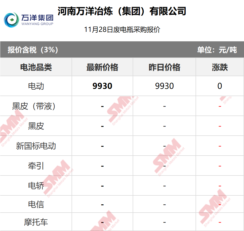 11月28日万洋鸿达 废电瓶采购报价
