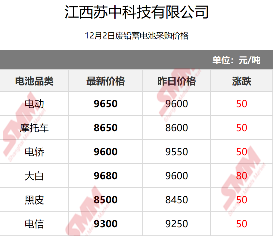 SMM 2025/12/8 国内知名再生铅企业废电瓶采购报价