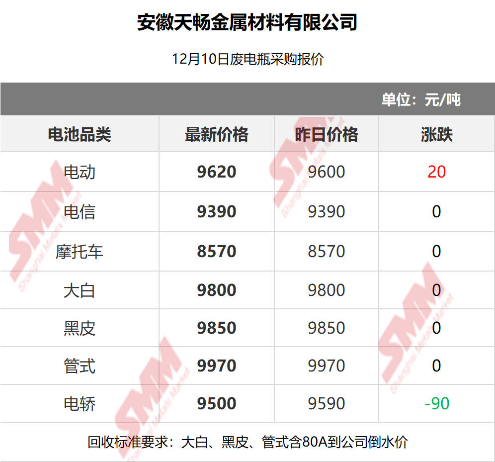 12月10日安徽天畅 废电瓶采购报价