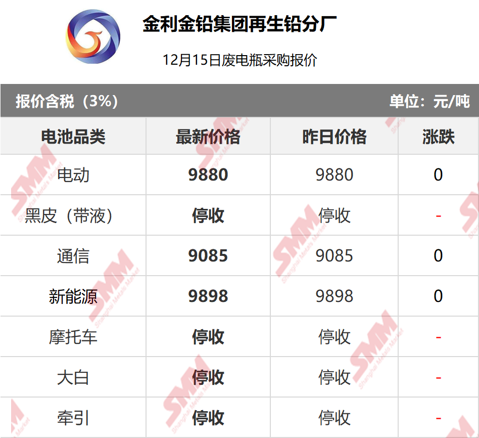 12月15日金利再生 废电瓶采购报价