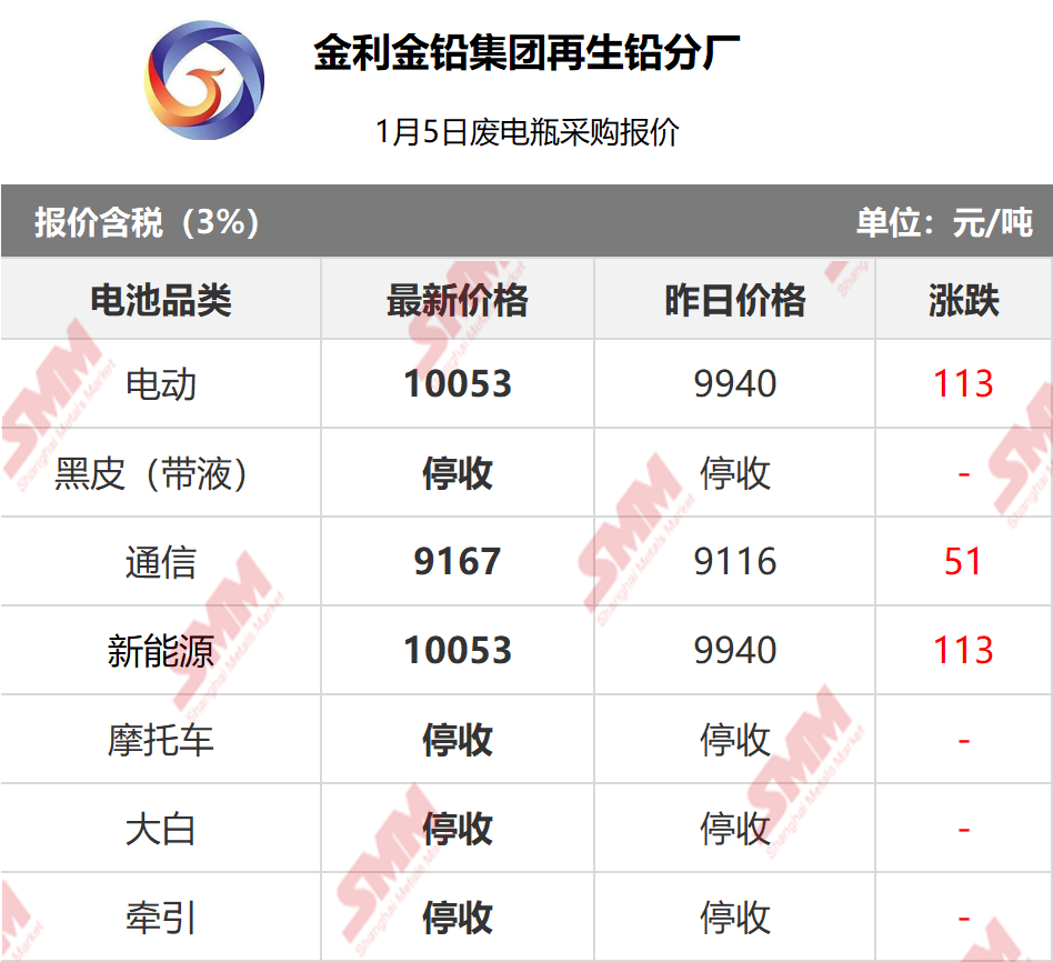 1月5日金利再生 废电瓶采购报价