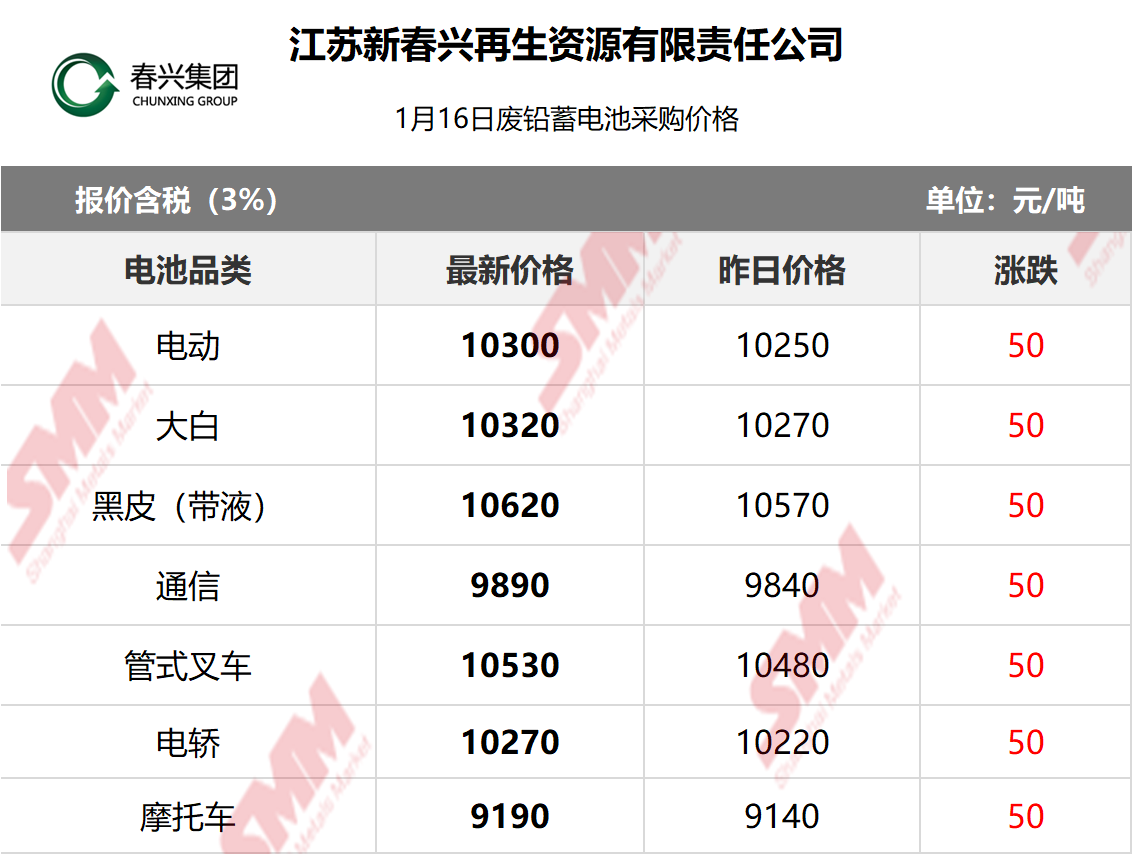 SMM 2026/1/19 国内知名再生铅企业废电瓶采购报价