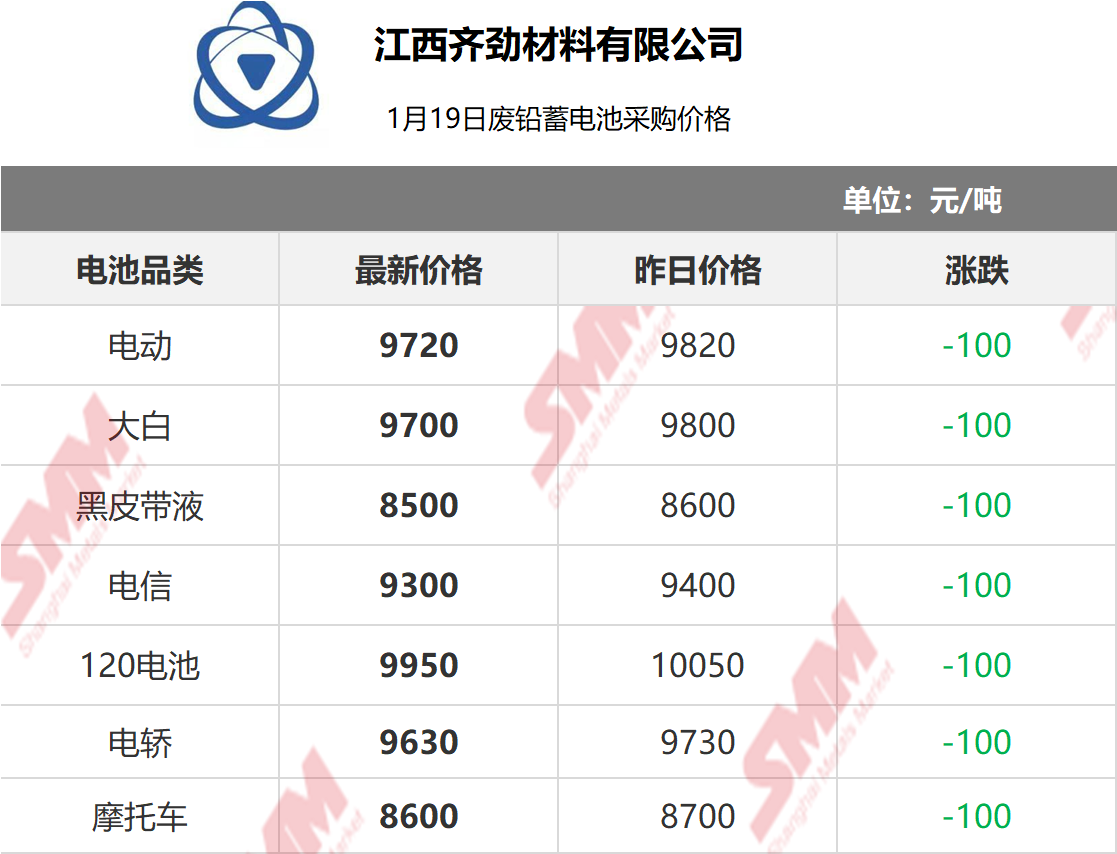 SMM 2026/1/19 国内知名再生铅企业废电瓶采购报价