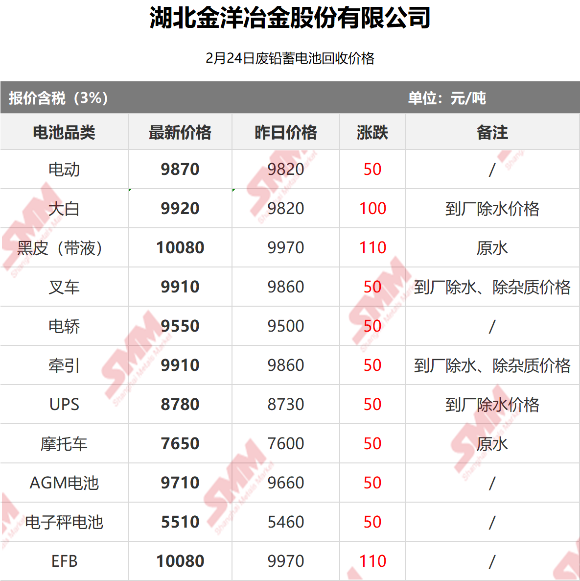 2月24日湖北金洋 废电瓶采购报价